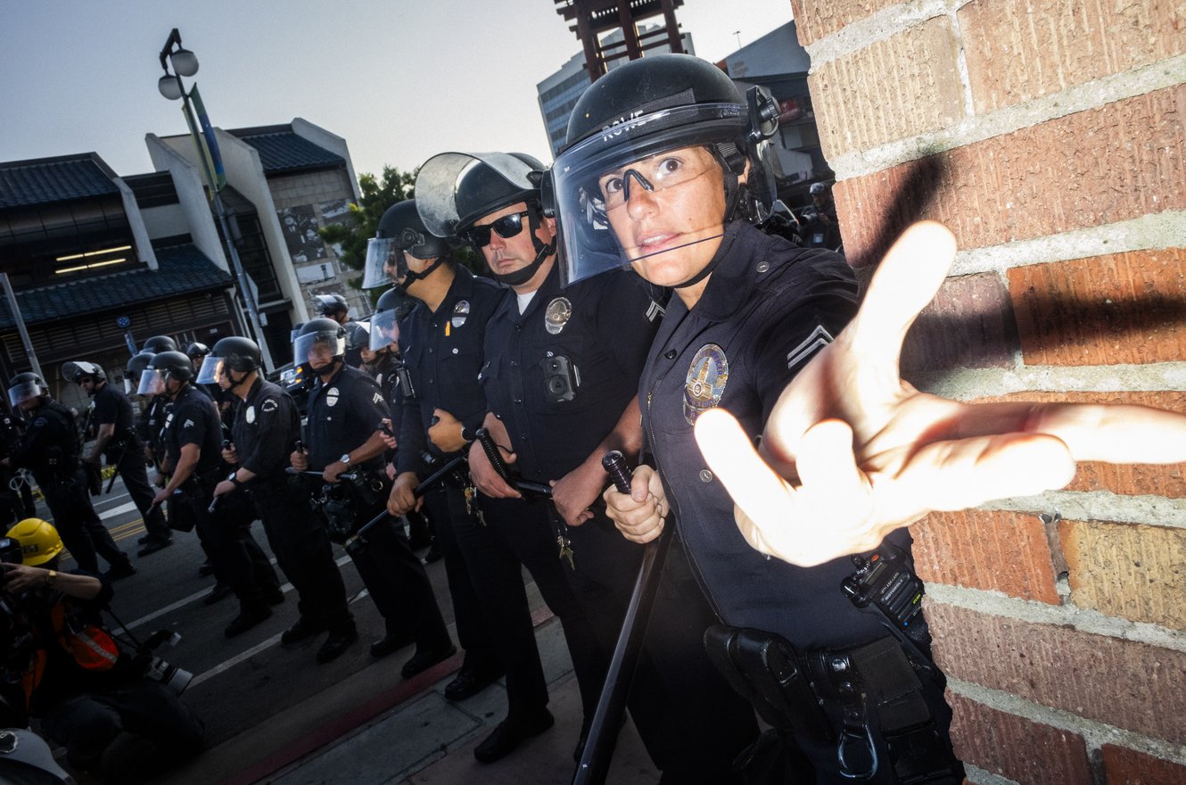 "image_caption": "<p data-block-key=\"fxbd5\">Law enforcement at an anti-deportation protest in downtown Los Angeles, California, on June 10, 2025. Independent journalist Crystal Heath was kettled and arrested while documenting the protest.</p>",