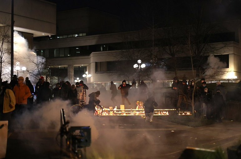 "title": "Photographer hit with projectiles and chemical irritant, shoved at Oregon protest",