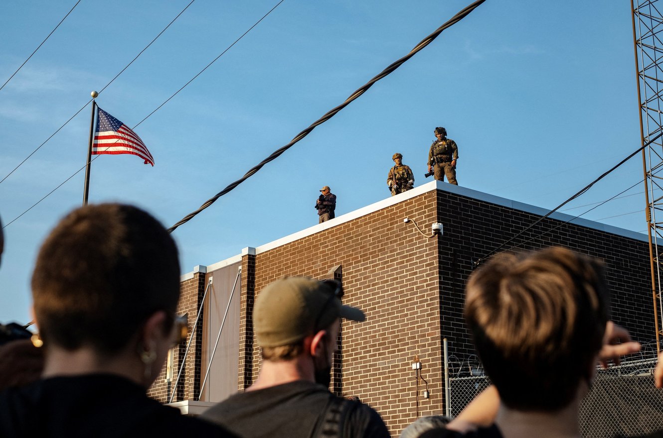 "image_caption": "<p data-block-key=\"w6aqk\">Federal agents stand guard on top of a U.S. Immigration and Customs Enforcement facility in Broadview, Illinois, on Sept. 19, 2025. Photojournalist Audrey Richardson was caught in chemical irritant and shot with pepper balls by officers that day.</p>",
