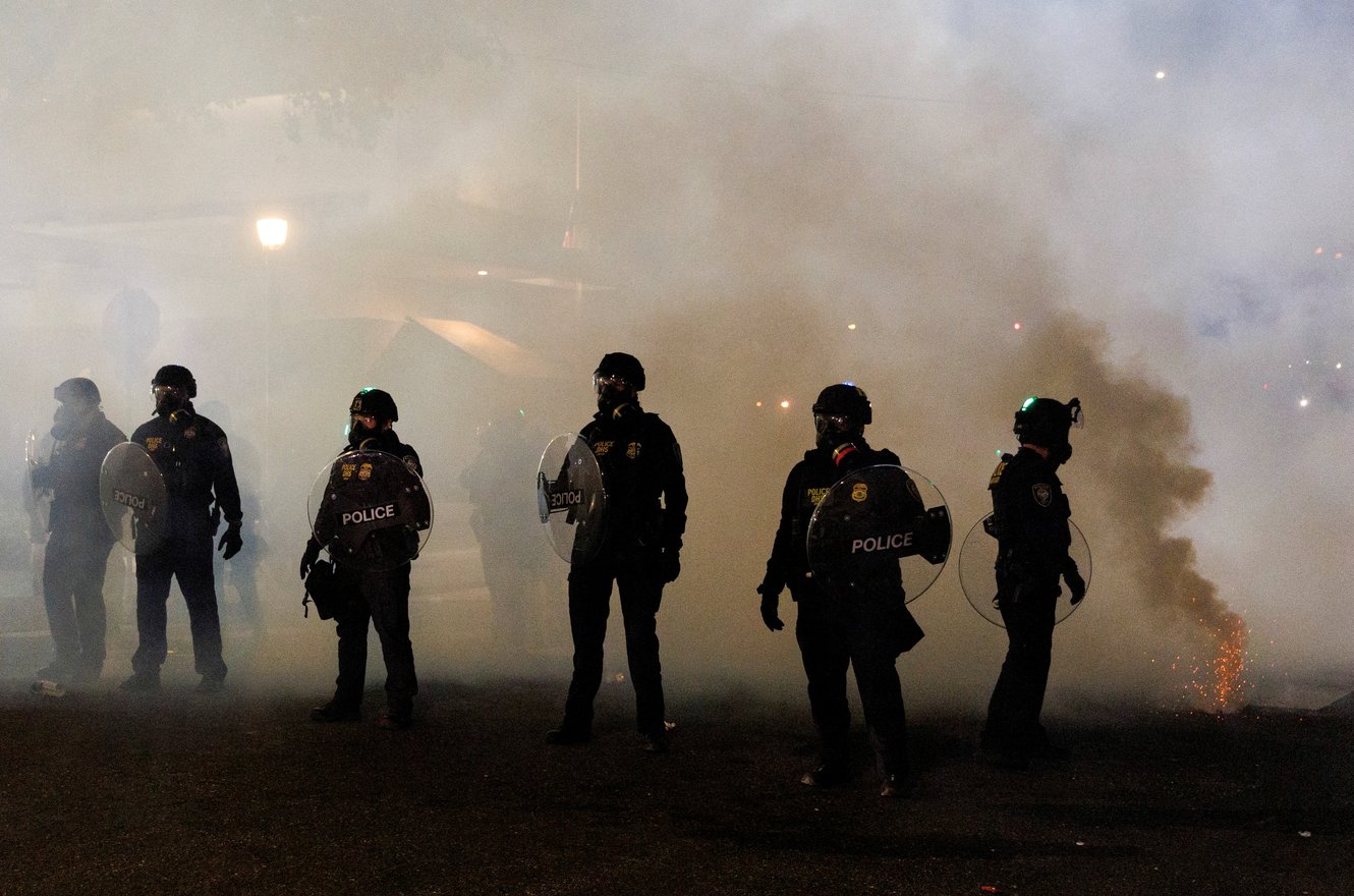"image_caption": "<p data-block-key=\"w6aqk\">Federal agents stand guard on top of a U.S. Immigration and Customs Enforcement facility in Broadview, Illinois, on Sept. 19, 2025. Photojournalist Audrey Richardson was caught in chemical irritant and shot with pepper balls by officers that day.</p>",