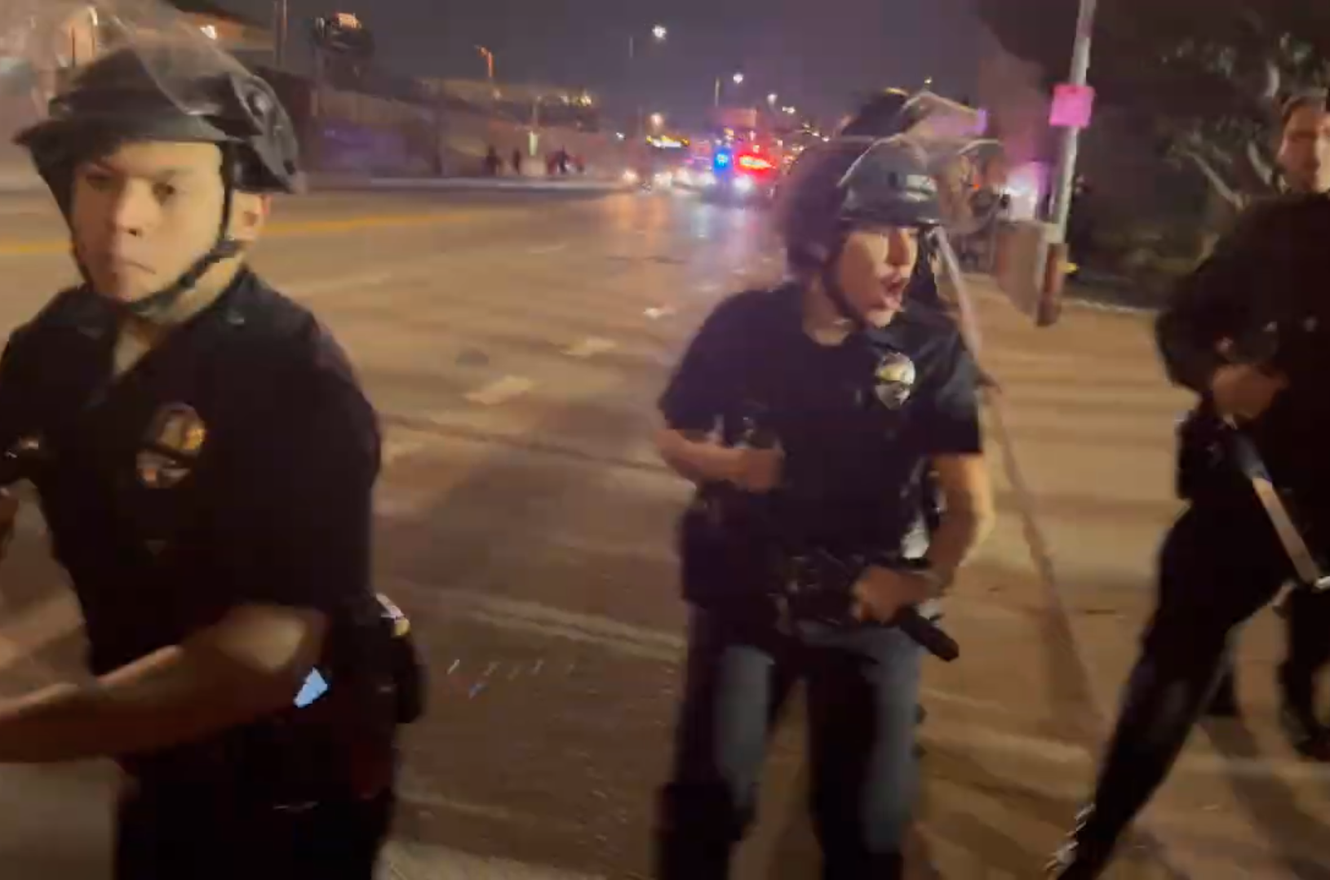 "title": "Journalist shoved by LAPD while covering pro-immigrant car caravan",