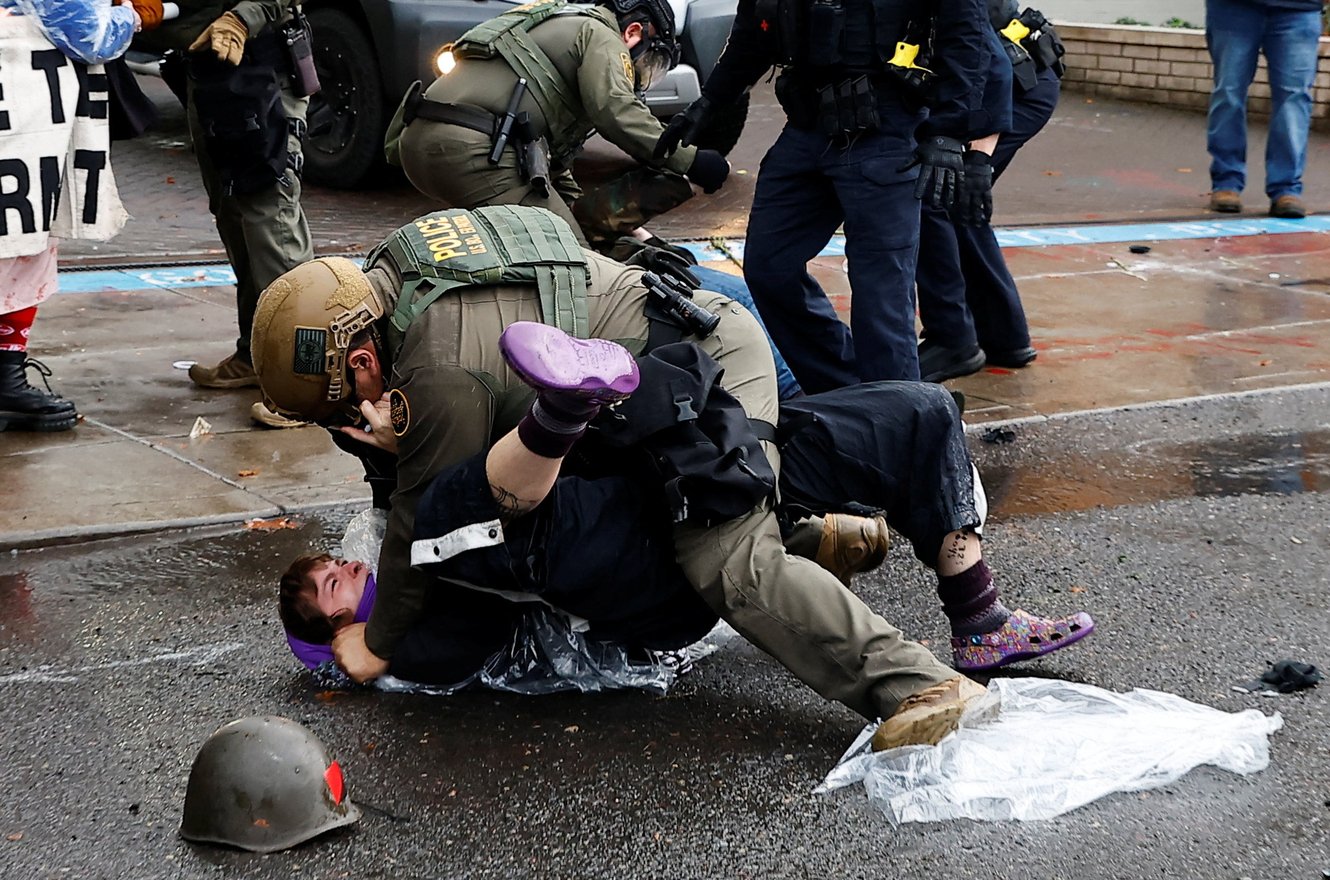 "title": "Journalist shot with pepper balls by federal officers at Illinois protest",