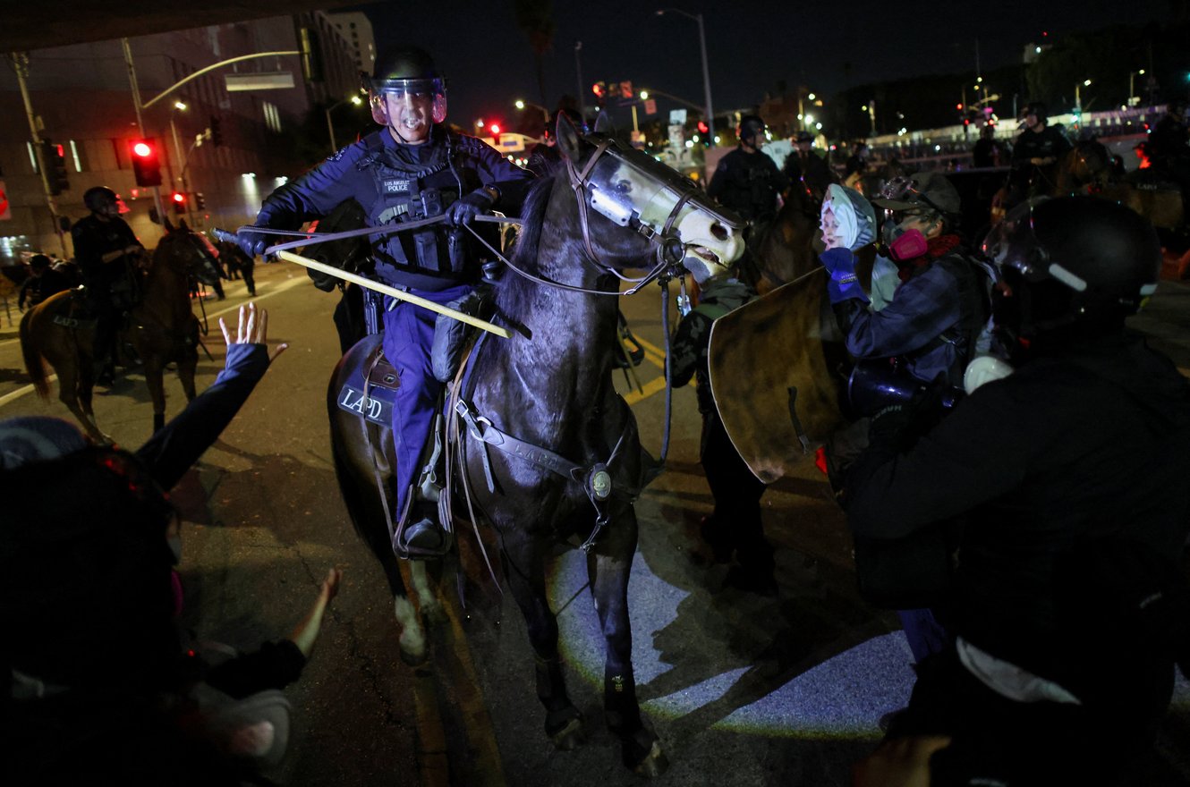 "title": "Photojournalist knocked to the ground by mounted officer at LA protest",
