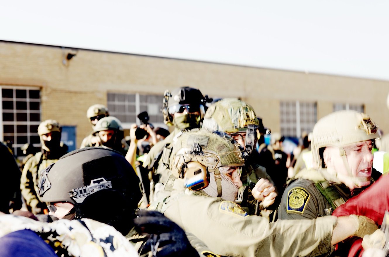 "image_caption": "<p data-block-key=\"yjl59\">Federal agents at a U.S. Immigration and Customs Enforcement protest in Broadview, Illinois, on Sept. 27, 2025. Chicago Sun-Times photojournalist Anthony Vazquez was struck with projectiles while covering the demonstration.</p>",