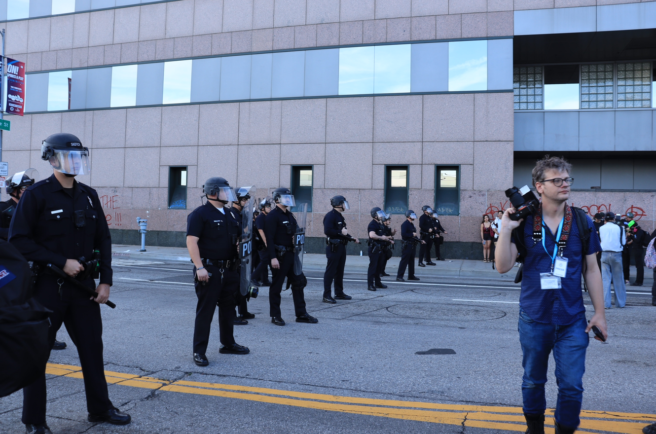 "url": "https://pressfreedomtracker.us/all-incidents/journalist-shoved-by-lapd-threatened-with-arrest-at-la-protest/",