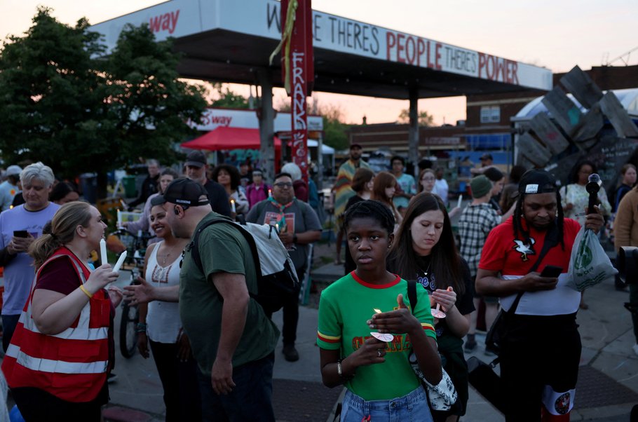 People take part in a candlelight vigil on the fifth anniversary of the murder of George Floyd in Minneapolis. Earlier that week, the Department of Justice announced it was dropping federal oversight programs for police reform in the state.
